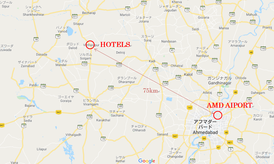 その"日本人街"は、正確にはアーメダバード市内から約70-80km、車で1時間半から2時間ほどのVithalpurという町にあります。